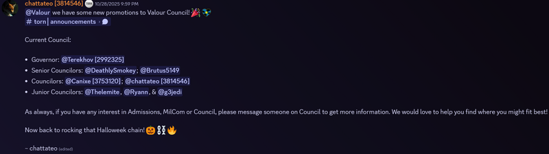 | Description | chattateo announces changes to Council in NPO - Valour. |